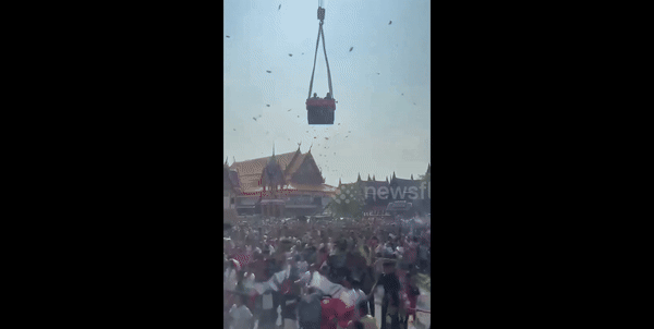 18일(현지시간) 베트남 매체 docnhanh에 따르면, 최근 태국 중부 수판부리주에 있는 사원에서 한 사업가가 부처님께 공덕을 비는 의미로 공중에서 현금을 살포했다.